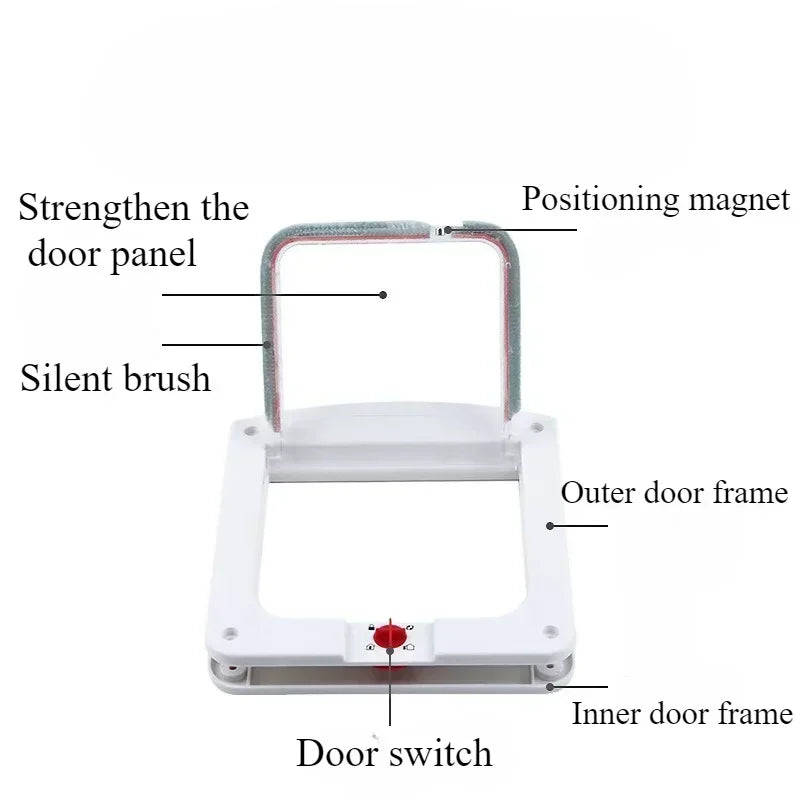 • Conception de sortie à double entrée : Cette porte pour chat présente une conception à double entrée et sortie, permettant à votre animal de compagnie d'entrer et de sortir facilement de la zone désignée.
