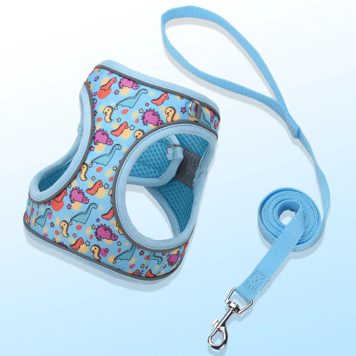 Kit harnais + leash 1,5 m pour chien/chat – Motifs fun, tissu doux, réfléchissant la nuit